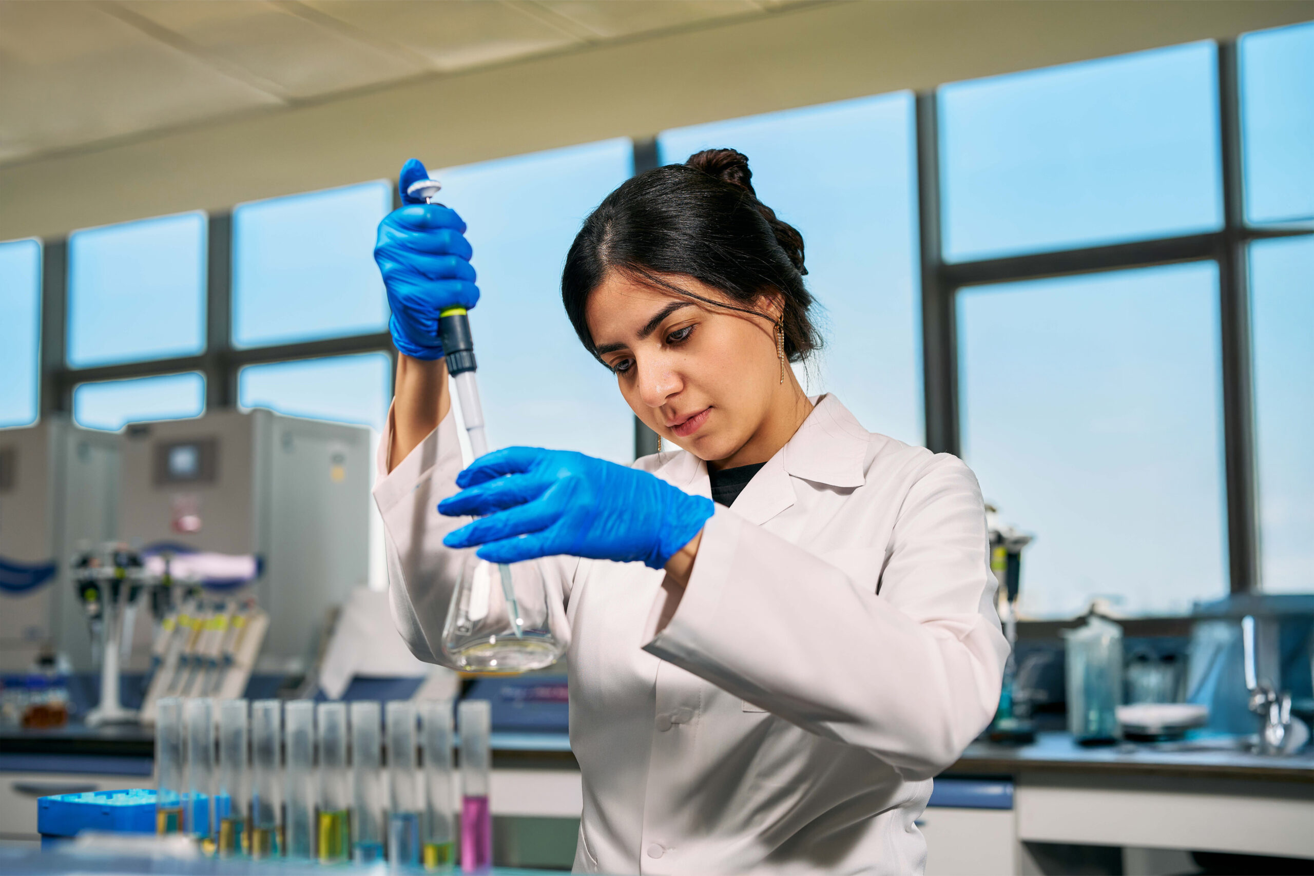 Zewail City’s five Research Institutes are equipped with advanced capabilities that support world-class scientific work, including a four-dimensional microscope that visualizes the motion of atoms and molecules in space and time.